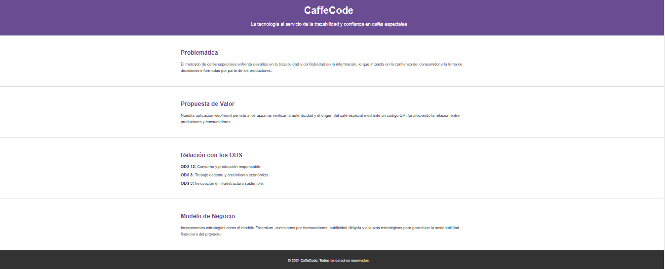 Lo que diferencia nuestra solución es su capacidad para fortalecer la relación entre productores y consumidores, creando un vínculo de confianza basado en la trazabilidad y la autenticidad del producto. Esta herramienta no solo proporciona información esencial sobre el café, sino que también permite a los productores demostrar el valor de sus productos de manera clara y accesible, aumentando su competitividad en el mercado global.