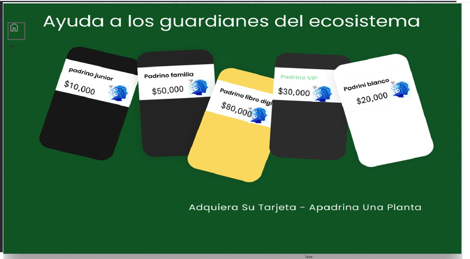 | 5. Modelo de Negocio | Esbozar formas de generar ingresos con la idea. | Imagen | ventatarjetaspadrino.png | La idea se monetiza vendiendo tarjetas padrino, asi mismo a nivel ambiental ,se recupera oxigeno para calidad de vida |